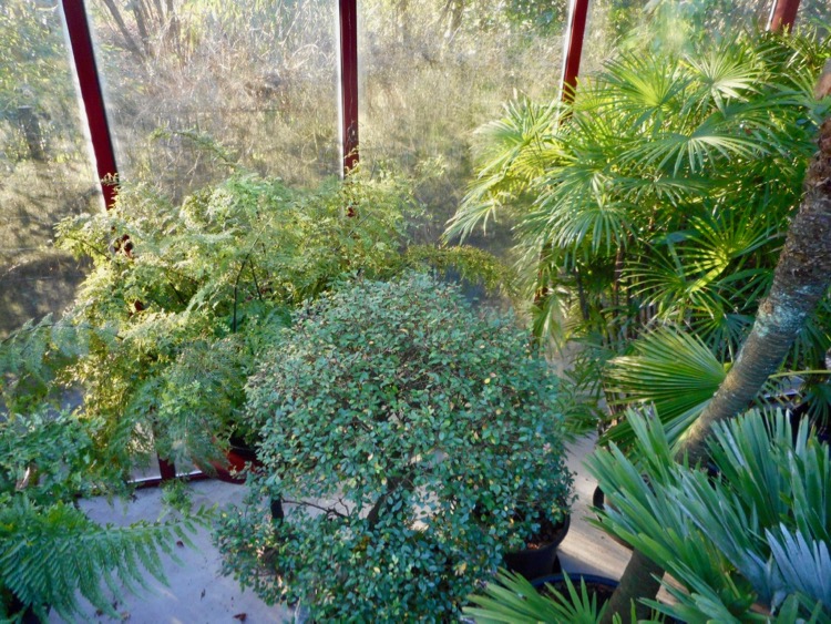 De overwintering van kuipplanten leent zich niet bijzonder voor mooie plaatjes. Er gebeurt weinig in deze periode behoudens een enkele uitspatting van de weergoden. Maar in de kas merk je daar weinig van. Een paar jaar geleden stond deze nog zo vol dat je ‘door het bos de bomen niet meer zag’. Door selectie is het nu overzichtelijker.