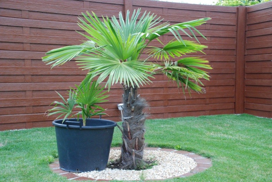 Washingtonia Filifera,met pot in volle grond,zo gemakkelijker om voor komende winter binnen te zetten