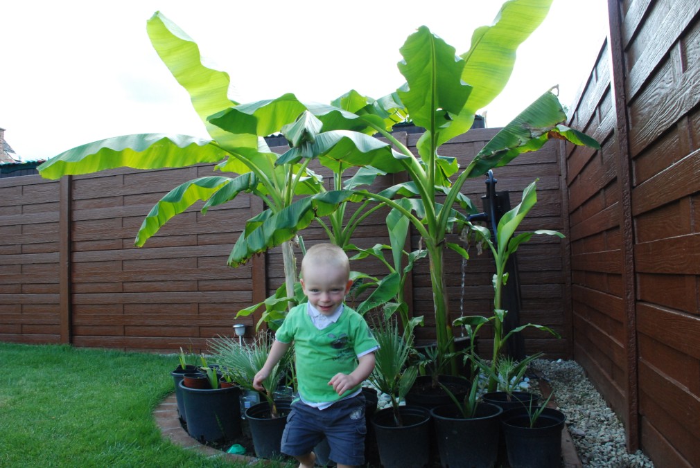 Nog enkele Musa Basjoo's andere kant van huis + Ph Canariensis in reserve (moest die in volle grond het loodje leggen),helemaal recht de Trachy Fortunei die eindelijk begint aan te slaan na 2 jaar in volle grond !!!