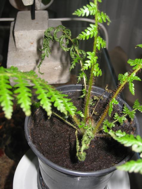 Hoi, dat is niet best! Hoe hoog is de luchtvochtigheid? In de serre waar ze uitkomen was deze gemiddeld 60/70% maar soms ook lager zeker bij vriesweer [nachten] bij aantasting van de varenrauwmug verslapt het blad maar nooit verschroeiing ! Dit lijkt erop dat de lucht om het plantje te droog is Bert, zijn het alle blaadjes of de kleine oudste? zet in dit geval het plantje boven een grote schotel, maar NOOIT sproeien daar wordt dit nog erger mee! Hou ons op de hoogte.