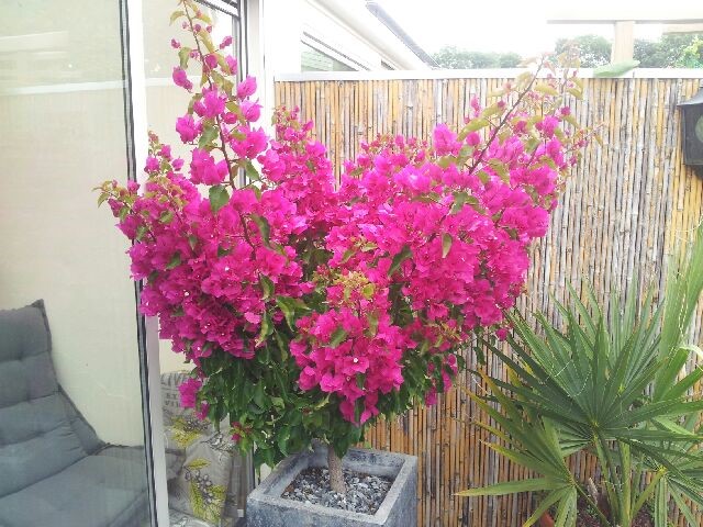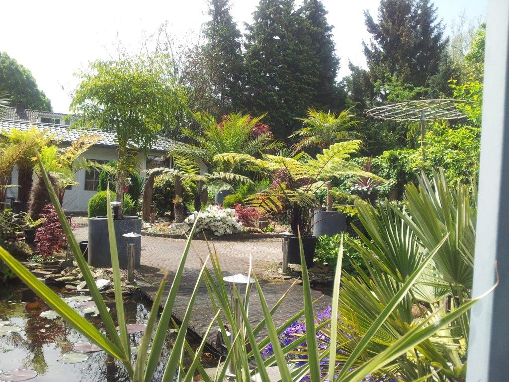 Het liefst zou ik dat willen, maar mijn tuintje is nogal klein. Als ik de palm in de volle grond zou zetten, komt -ie een stuk lager te staan en hangen de bladeren in je gezicht als je er langs wilt. Het zou vooral mijn vriendin nogal gaan ergeren als ze er niet meer langs kan zonder bladeren in haar gezicht te krijgen