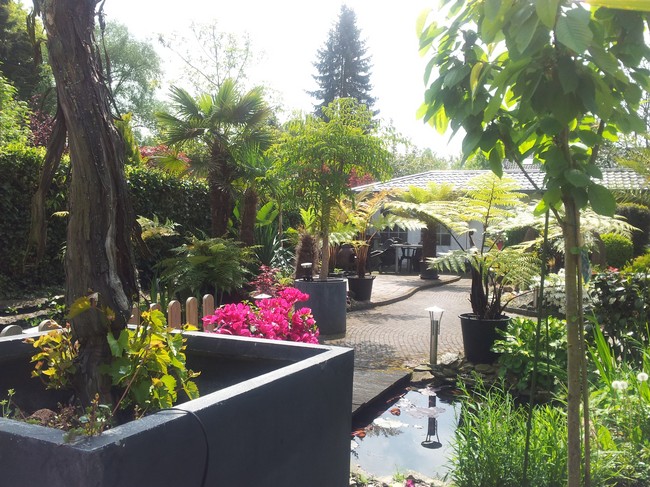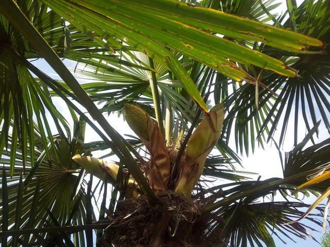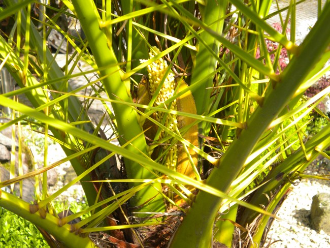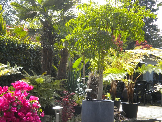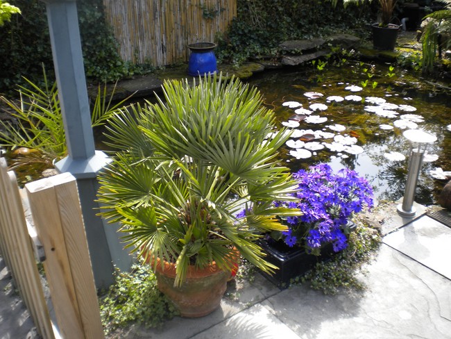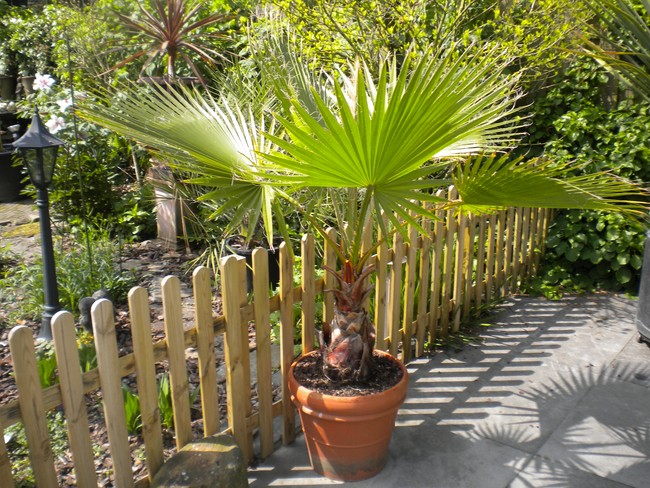 De palm zal dan waarschijnlijk wel flink aan het groeien gaan, want de -explosieve- groei blijft toch best achter. Ik zit nog op een manier te broeden dat ik de palm op een verhoogde manier toch in de volle grond kan zetten, zoiets als ik laatst met mijn Trachycarpus fortunei heb gedaan; daarvoor heb ik een gat in het beton van het terras gehakt, daar een bak ingezet waar ik de bodem uit heb gehaald, zodat de boom -verhoogd- toch in de volle grond staat en lekker door kan groeien, zonder dat je er last van hebt.