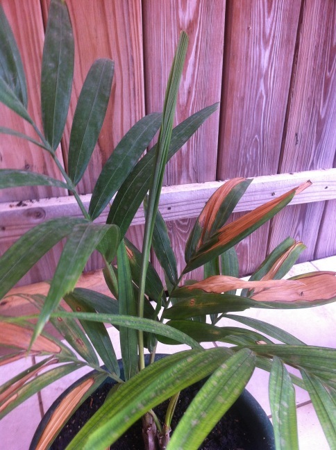 De bamboopalm (sorry geen andere naam bekend) is bijgekomen van een tijdje te nat staan.