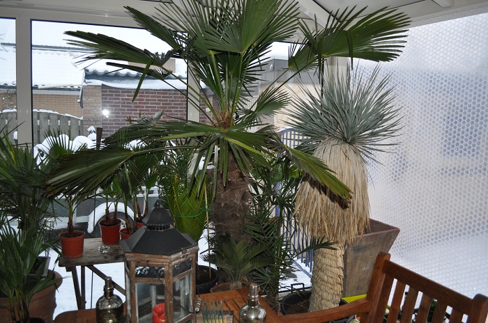 bedankt voor de leuke reactie,s Rene, ik heb hem vorig jaar goed beschermd, hij is toen weer helemaal terug gekomen, De 2 winters er voor kon ik in het voorjaar zo de speer er uit trekken. Ik had hem toen ook beschermd en had ik een lichtkabel aan staan. Deze had ik destijds ingegraven om de wortels. Nu gebruik ik deze lichtslang niet meer.Toch een sterke palm daar hij 2 maal op rij terug gekomen is. Moet er wel bij zeggen dat de palm behandeld is met bordeause pap. Hoop dat hij deze zomer een spurt maakt. Enne Dennis klopt voorheen zat ik regelmatig op Cemmunnos, Ik ga hier de draad weer oppakken.