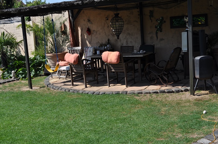 Dag Rob, inderdaad goed gezien, de planten die bloeien zijn voornamelijk blauw aangevuld met wit en geel en paars . Door enkele kleuren krijg je meer rust in de tuin. Bovendien is blauw een koele kleur, daardoor lijkt de tuin groter, De hoofdkleur groen (palm) probeer ik te combineren met blauwe of witte bloemen in combinatie met het blad.De bladeren hebben bij mij de voorkeur, deze moeten mooi, groot of aantrekkelijk zijn. Het is dan de kunst om de juiste combinatie te vinden. Bijvoorbeeld de sierui (paars)die in het voorjaar omhoog schiet boven het blauw-grijze groot blad van een hosta. groetjes Herman