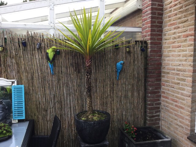 Trachycarpus Fortunei vorig jaar in de volle grond gezet en groeit opvallend hard met veel blad al dit jaar en dan te bedenken dat deze (bij de Praxis gekocht) volledig in de klei stond. Zoveel mogelijk geprobeerd om klei van de wortels te krijgen en heb de palm maar liefst 3 dagen onafgebroken in een emmer met water en een flinke dosis Palmbooster gezet. Misschien heeft dit gewerkt en is dit de gouden regel?