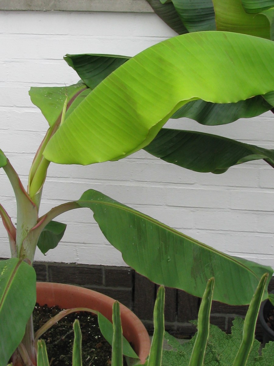 Beetje verscholen, de Musa 1000 fingers (links in beeld) Wou eigenlijk de vergelijking maken van het nieuwe blad met de totale hoogte van de stam.