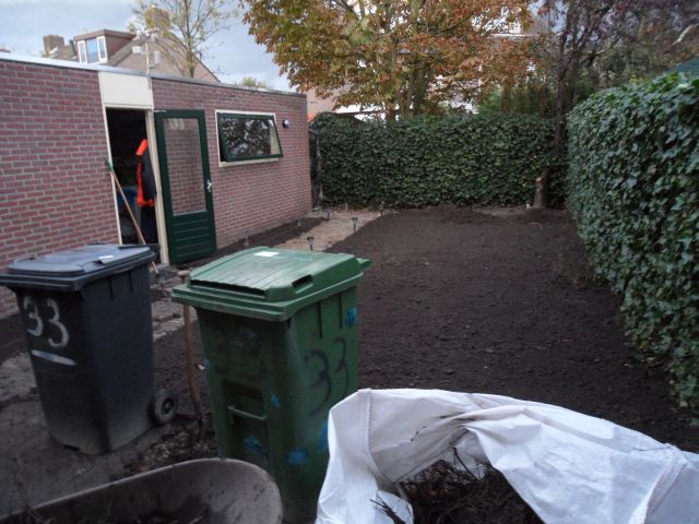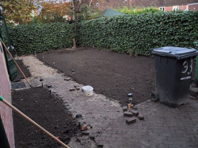 Nu het volgende, mijn tuin was dus helemaal bestraat en dus lag overal 20 cm straatzand.