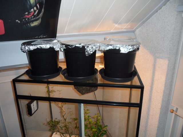 Ik had dus op internet een aantal zaden gekocht en heb deze geplant in potten boven op mijn terrarium (lekkere warme voetjes) en al na 4 weken heb ik mijn eerste bananen plantje :applaus: :applaus: :applaus: :applaus: