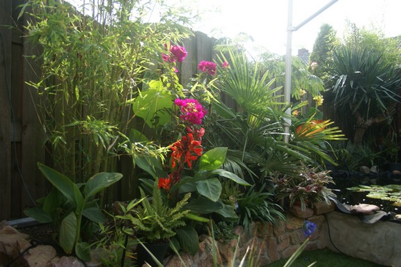 nee niet je kunstgras (heb jaren een kunstcactus van 1,20 in de tuin gehad, lol) maar je yucca, ik ben jaloers, wouw wat een groot apparaat, echt supermooi. Tetrapanax ook supermooi, dit jaar hebben wij een kleine gekocht dus ik hoop volgend jaar ook op een volle bos, kannie wachten!