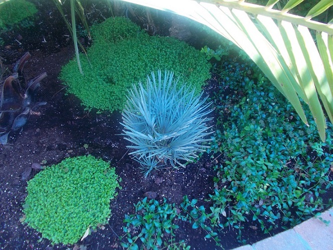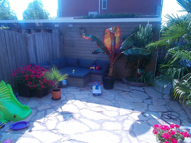 Prima toch? Een bak hanggeraniums zou het beeld al veranderen. Ik had bij mij hetzelfde probleem, wat perkgoed deed wonderen.