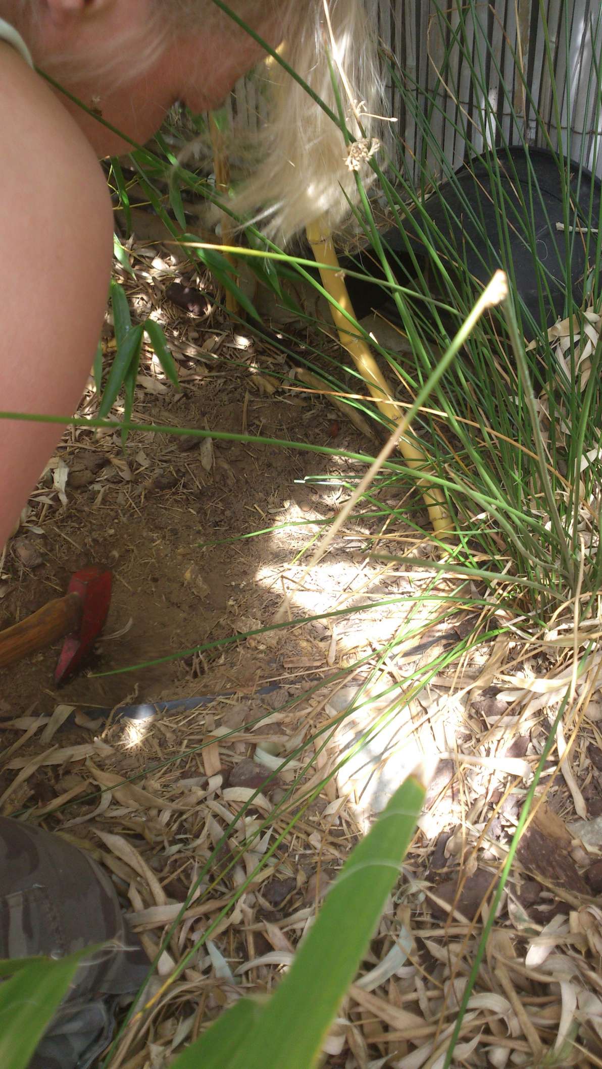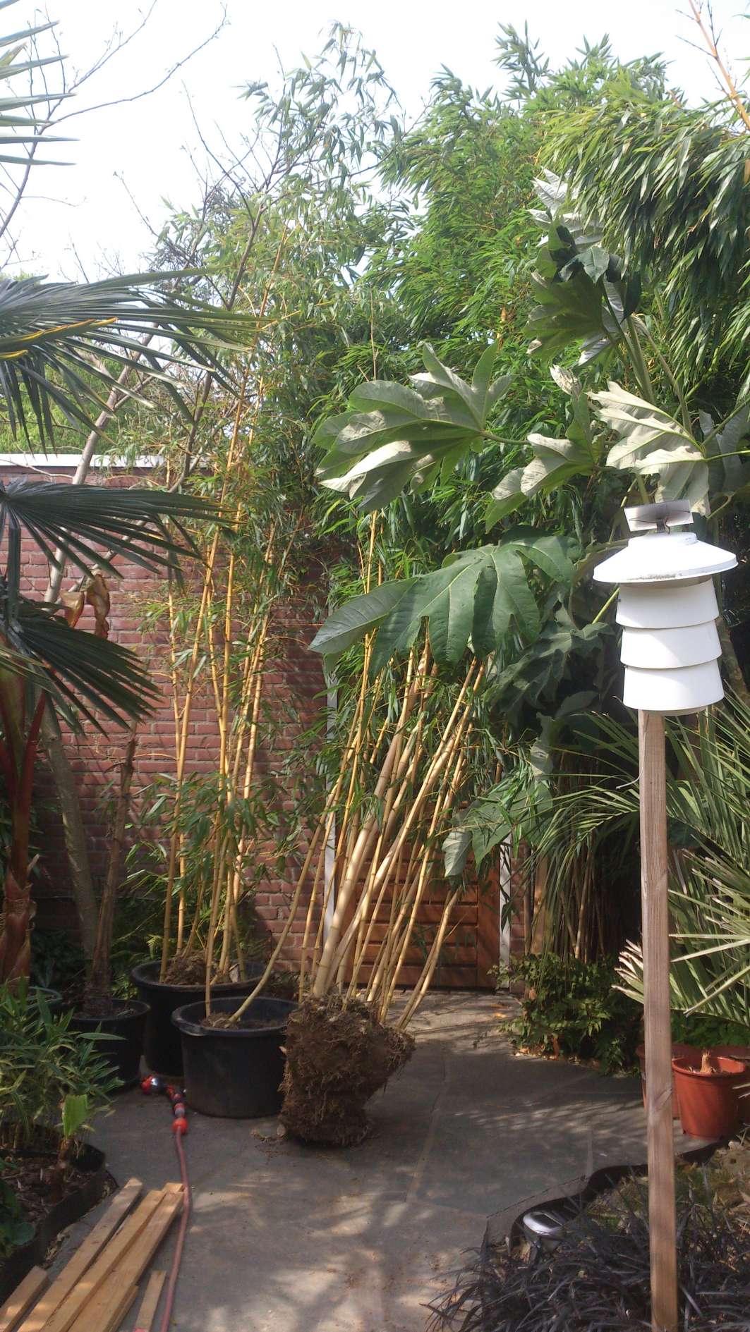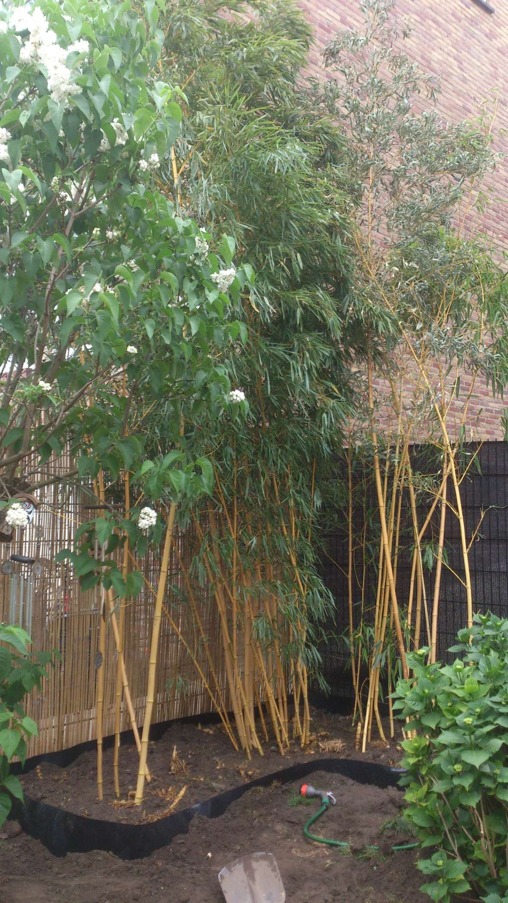Na een paar dagen hard bikkelen in Raymond zijn tuin heb ik dan eindelijk mijn favoriete bamboe in mijn hofje. Rob van `t voske wil ik via deze weg nogmaals bedanken voor het transport.