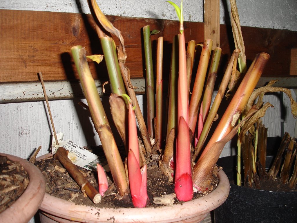 in de garage waar de exoten overwinteren bij een gemiddelde temperatuur van 10 graden is er ook al lente te bespeuren,de canna's doen hun uiterste best