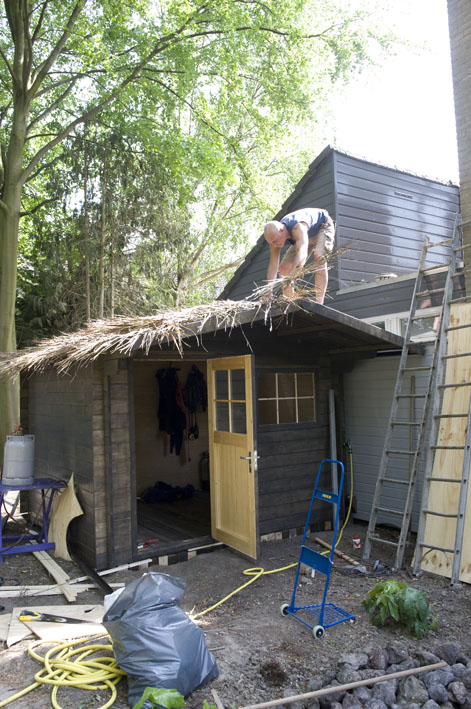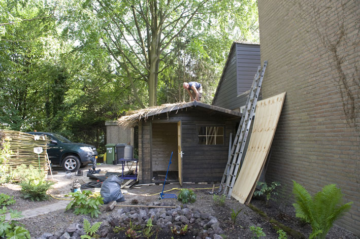 Alles bij elkaar hebben wij nu 90 trachybladeren van onze eigen palmen, en dat doet best pijn want zoveel heb ik nog nooit moeten snoeien, maar het is niet anders, ze hebben het moeilijk na de verhuizing, toen een natte koude winter en nu een heet en droog voorjaar....