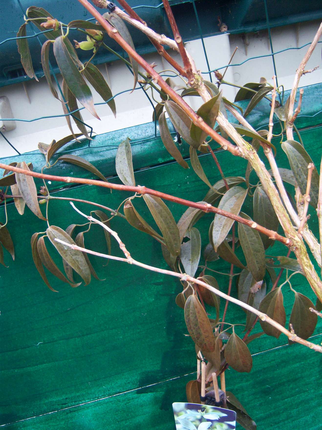 Spijtig van de Clamatis Armandii. Deze stond voor het vriesweer mooi groen en boordevol bloemknoppen. Nu is hij volledig bruin. Hopelijk redt hij het.
