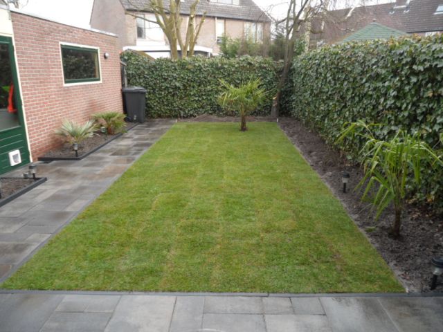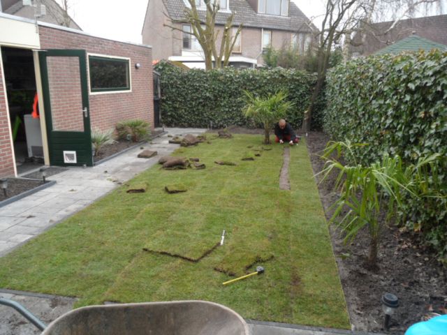 Het weekend daarop heb ik samen met mijn broer grasmatten gelegd dit omdat je gelijk resultaat hebt en in mijn tuintje kost het echt niet veel.