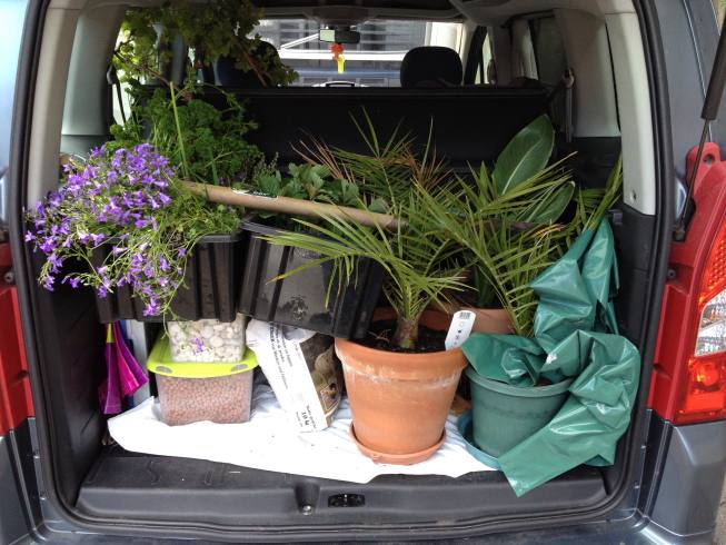 Enkel de zelfgezaaide Cycas houd ik. Die is mooi en wordt niet snel té groot. Dat zal de herinnering vormen. Net als enkele deco items voor de tuin. De tuinkabouters heb ik wijselijk laten staan.