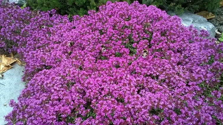 Ook de hommels en bijen waren erg gelukkig met de kruiptijm.