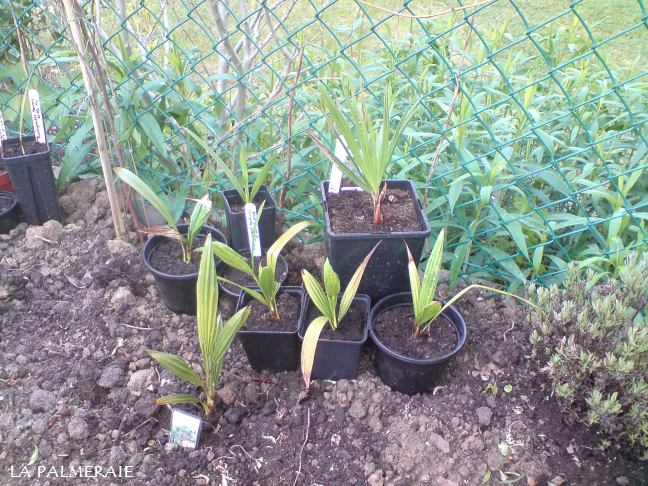 - fortunei en nanus zaailingen en een Chamaerops (3jr oud) rechtsboven