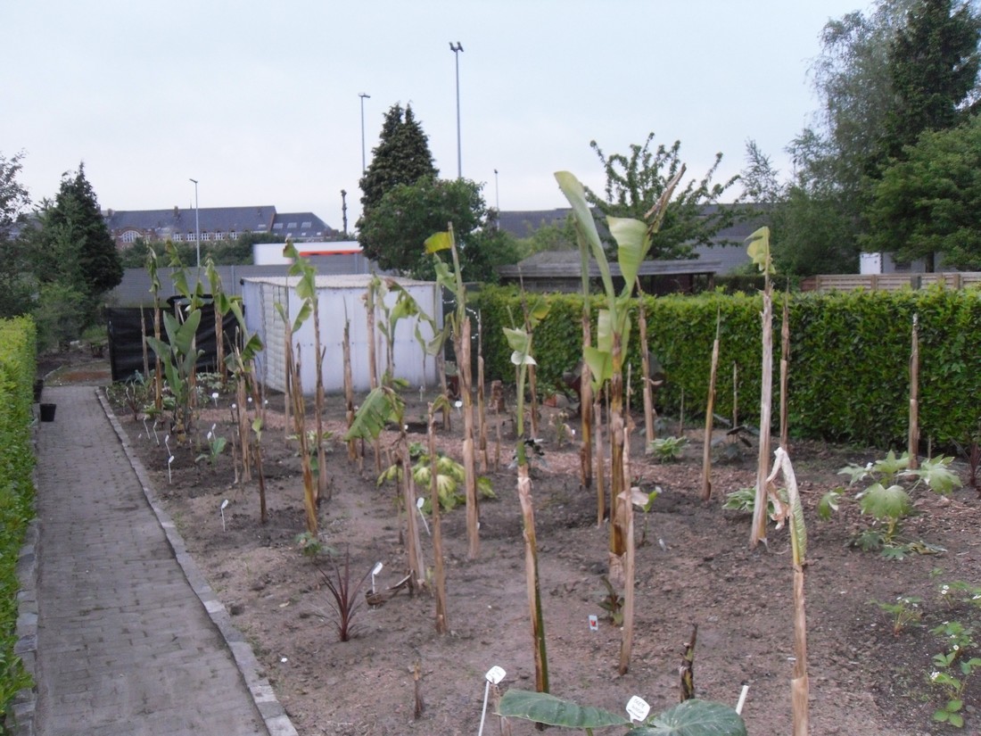 De tropische bananen staan nog even in de serre en ga ik definitief volgende week in de grond steken.