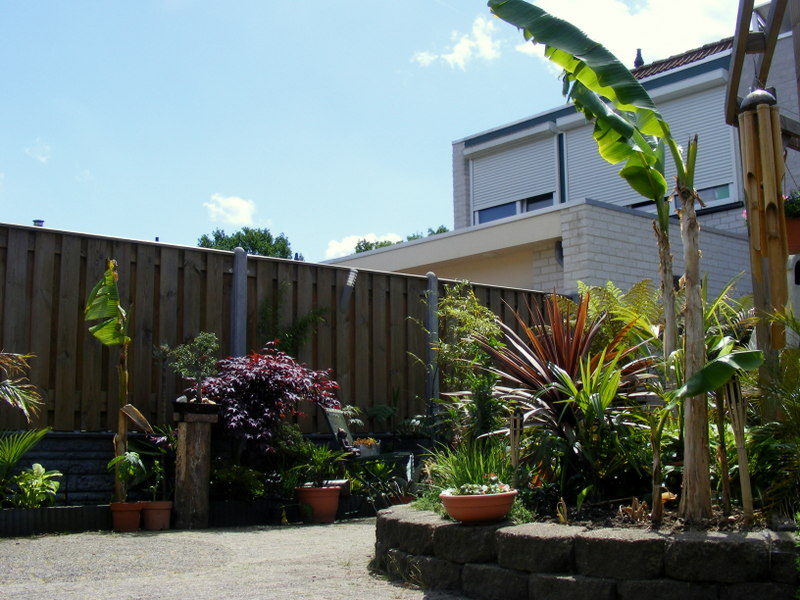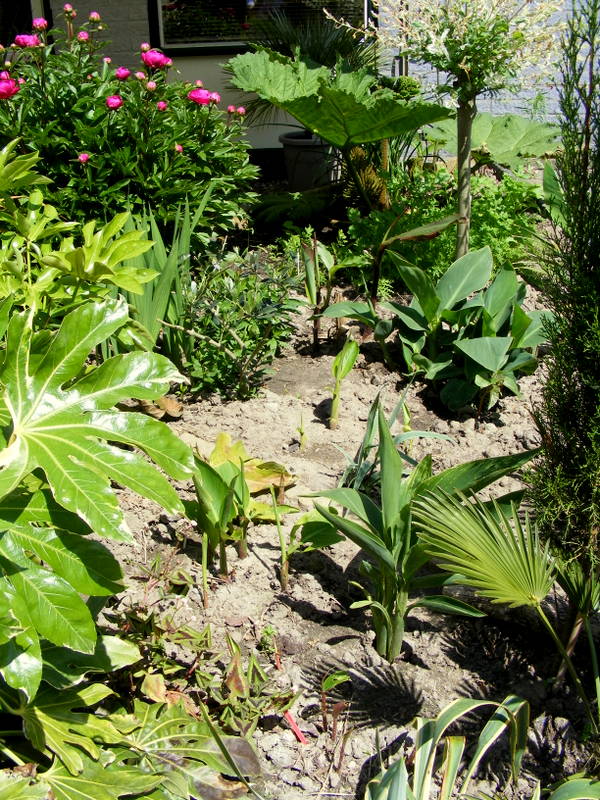 Ik verwacht als alles in de groei is dat het weer mooi vol gaat worden, er zitten veel dahlia, lelies, canna, hedychiums en andere bolletjes en knolletjes in de grond die allemaal rustig naar boven beginnen te komen. Mijn moeder zei vorig jaar, ik zou wel meer bloemen willen. Dat gaan we regelen ;)
