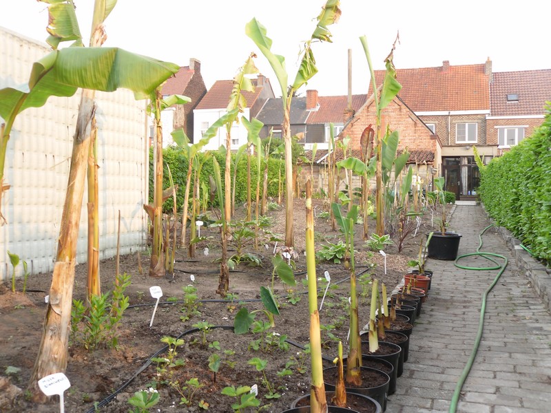 Dat ze nu maar goed de grond inwortelen! De tropische soorten groeien ook wel mee, maar alles staat bijna in de volle grond, andere heb ik dan dubbel ook in pot om het verschil goed te zien.