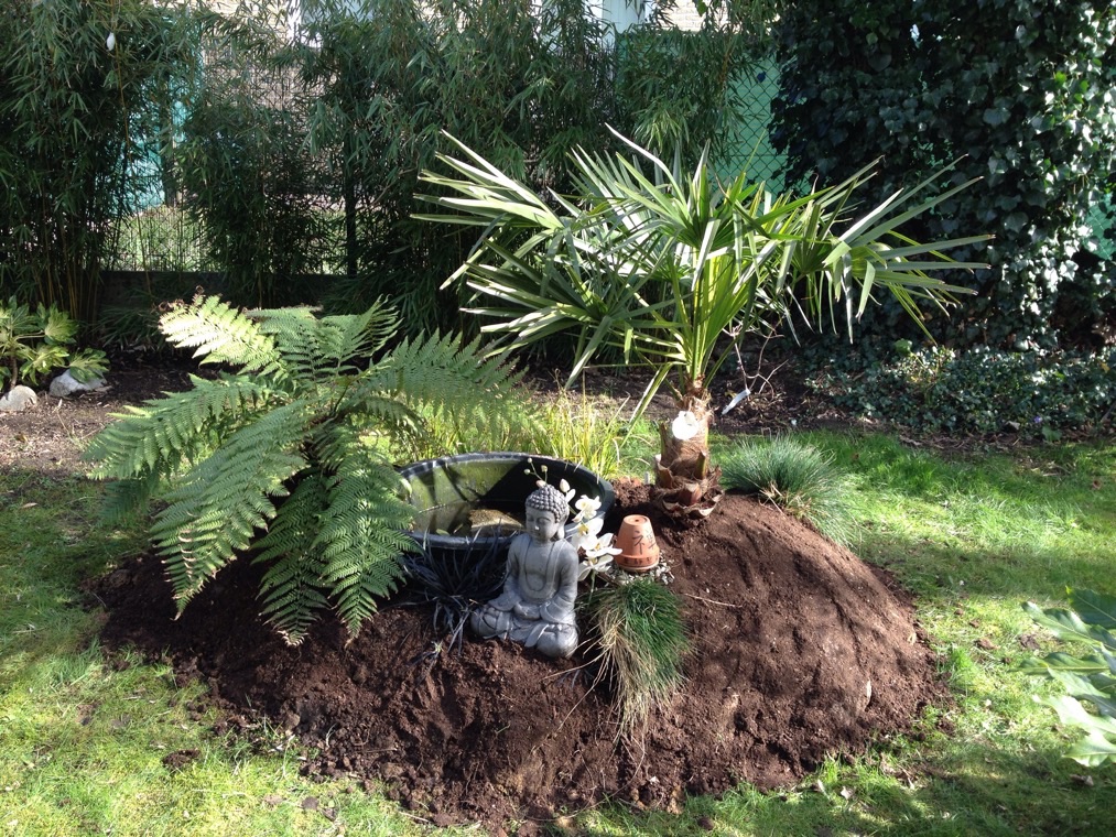 Gisteren hard gewerkt buiten. Naast het legen van de compostbakken (860kg bleek later) heb ik een nieuwe border gemaakt rond een Trachy waar ook de hystrix bij gekomen is, heb eindelijk mijn lataarns gemaakt nav een idee hier op het forum en is de verhoogde border grotendeels af.