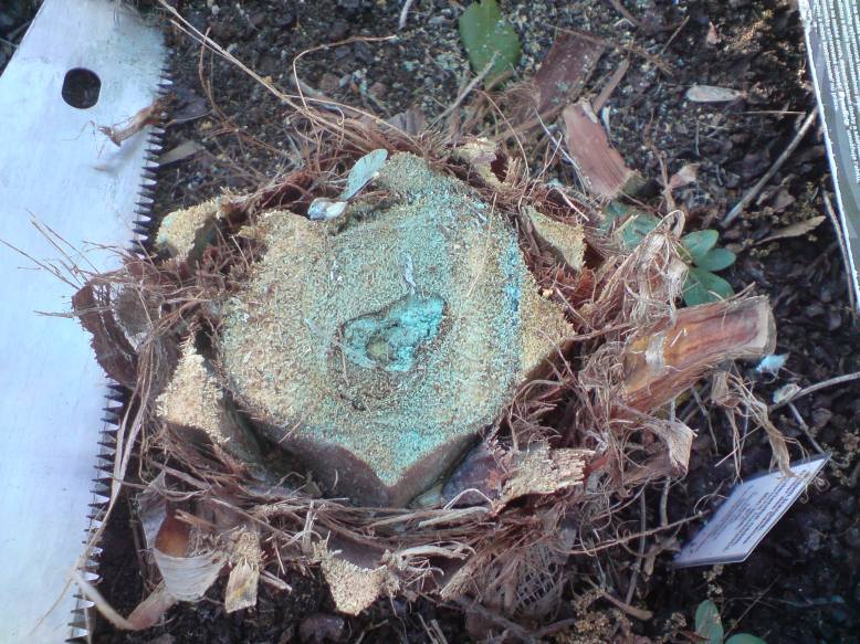 ) Bij de palmen met speerrot aan het zagen geslagen: