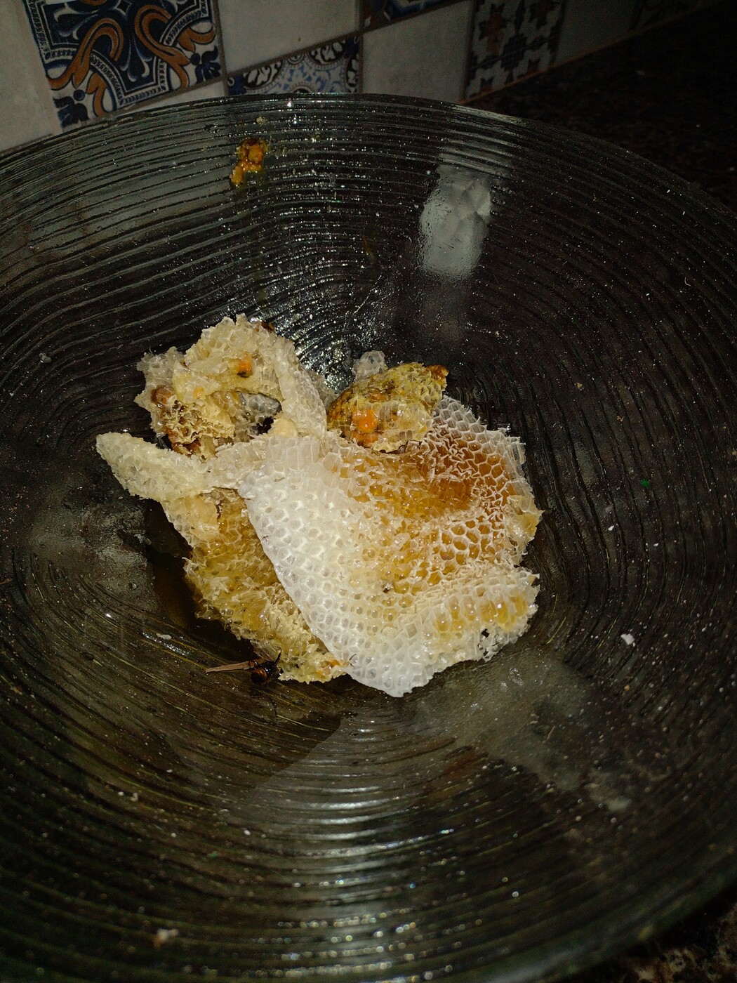 Vandaag grote schoonmaak. De betegelde muur zat onder de honing en was geel uitgeslagen van de rook :roll: