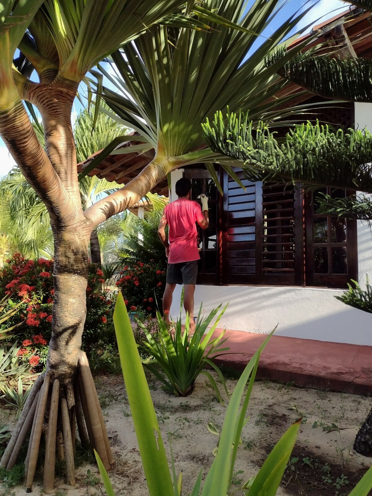 Ik werk hier meestal met dezelfde groep locals, die weten dat ik een pietje precies ben (in hun ogen dan. De standaard ligt hier anders als in Europa). Heb redelijk goede ervaringen met hun en zei weten waar ze op moeten letten, zodat ik dat niet steeds opnieuw hoef uit te leggen. En voor omgerekend 18 euro per dag ga ik zelf niet staan zweten met schuurpapier en een kwast