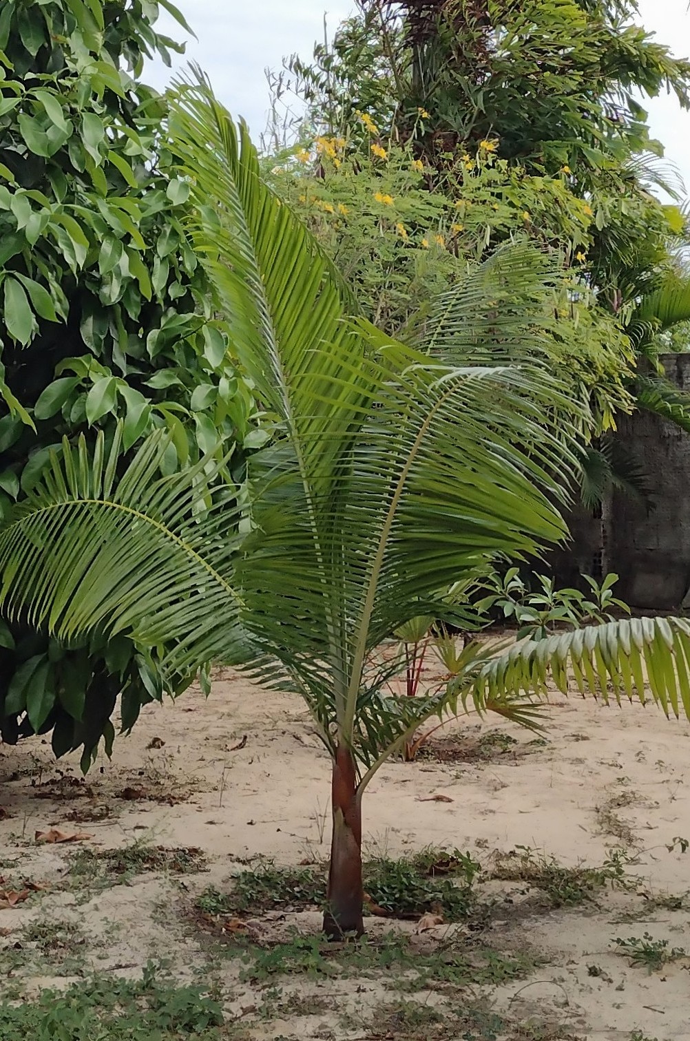 Hoi Lagarto, De grote meerderheid van onze planten zijn inderdaad helaas volledig afhankelijk van de bewatering. Dwz buiten het regenseizoen wat hier ongeveer voor een maand of 4 de kunstmatige watergift overneemt. De zandbodem in combinatie met het klimaat geven geen andere optie. Gelukkig kan ik al op veel plaatsen in de tuin de hoeveelheid wat afbouwen. Vanwege het bladerendak wat op termijn agv de groei voor de nodige schaduw zorgt. Slechts enkele soorten groeien onder de gegeven omstandigheden en kunnen zonder de kunstmatige watergift. Dat zijn oa de oudere Cocospalmen die erg diep wortelen en bij het grondwater kunnen. Gelukkig zit dat hier op slechts 6 meter, wat voor de regio relatief hoog is. Maar ook de 2 Pandanus soorten die ik hier heb staan krijgen geen water van de irrigatie. Verder heb ik zoals je zelf al noemde enkele Agave's en cactussen die ook nagenoeg nooit bewaterd worden.