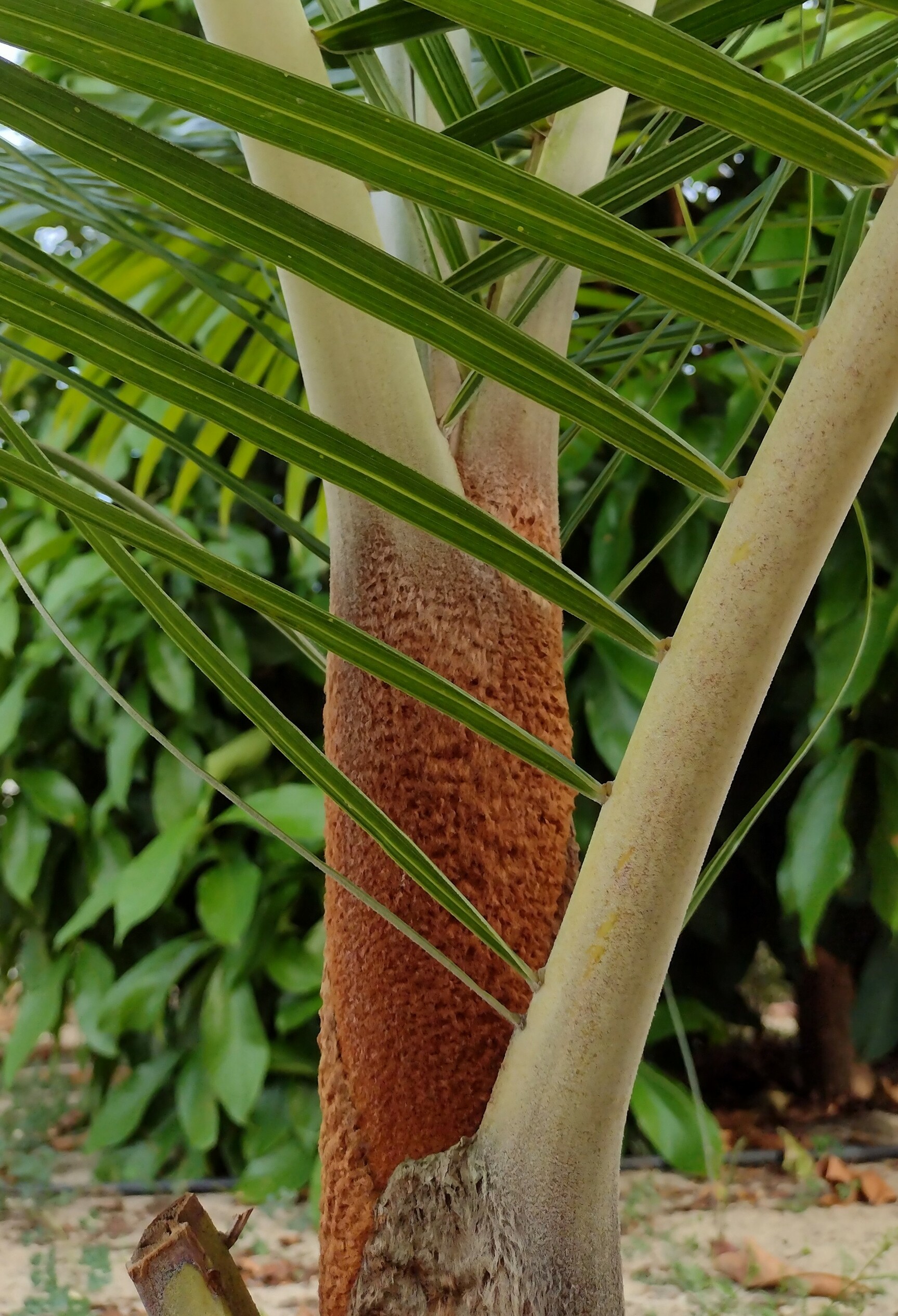 Update Dypsis lastalliana en D. leptocheilos met close up stammetjes. Eerstgenoemde blijft beduidend sneller. Deze zit op ong. 3.5 meter terwijl de leptocheilos bijna 2 meter is..
