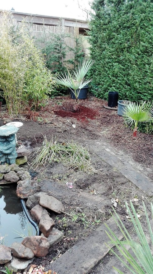 Even mijn cycas in volle grond gezet en met vader een grote fortunei gaan halen voor hem.