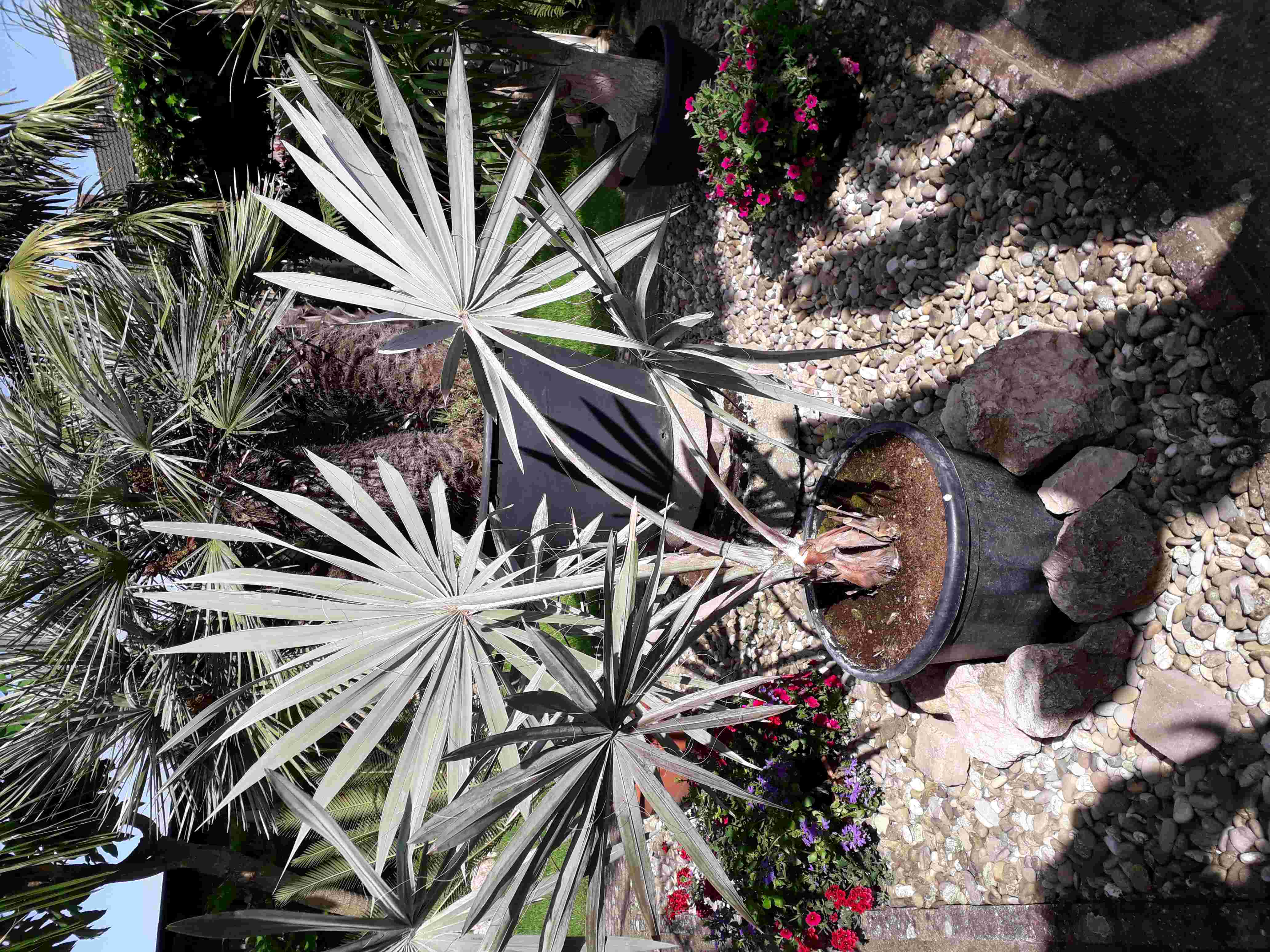 Zet hem onder een boom/palmboom of schaduwdoek hij overleefd geen volle zon!