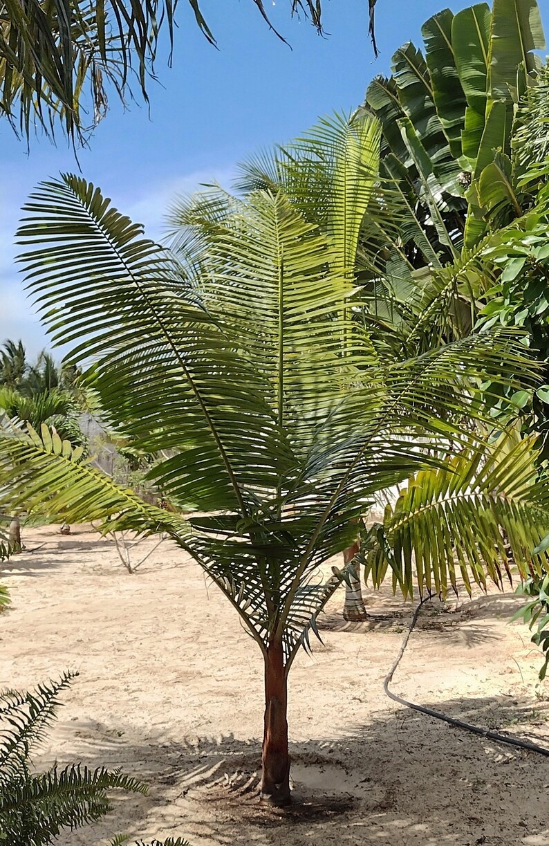 Copernicia baileyana, fallaensis of hospita zou inderdaad geweldig zijn, enige nadeel is dat ze zo verschrikkelijk traag zijn, zelfs hier. Heb nog een baileyana in pot voor de achtertuin, maar voordat je een beetje palm hebt ben je zo 20 jaar verder met die dingen. Roystonea is inderdaad een leuk en snel groeiend alternatief, was het niet dat deze hier op het resort al in overvloed langs de straten zijn aangeplant. Heb nog een tweetal Corypha umbraculifera in pot, wellicht dat ik er hier één van ga aanplanten als blikvanger in de voortuin ;) En dan de Carpentarias maar voor de achtertuin bewaar.