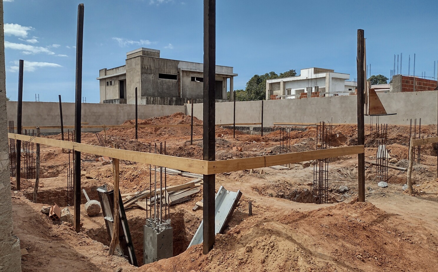 Volgende week gaat de bekisting erin met het ijzervlechtwerk en kan het beton gestort worden.