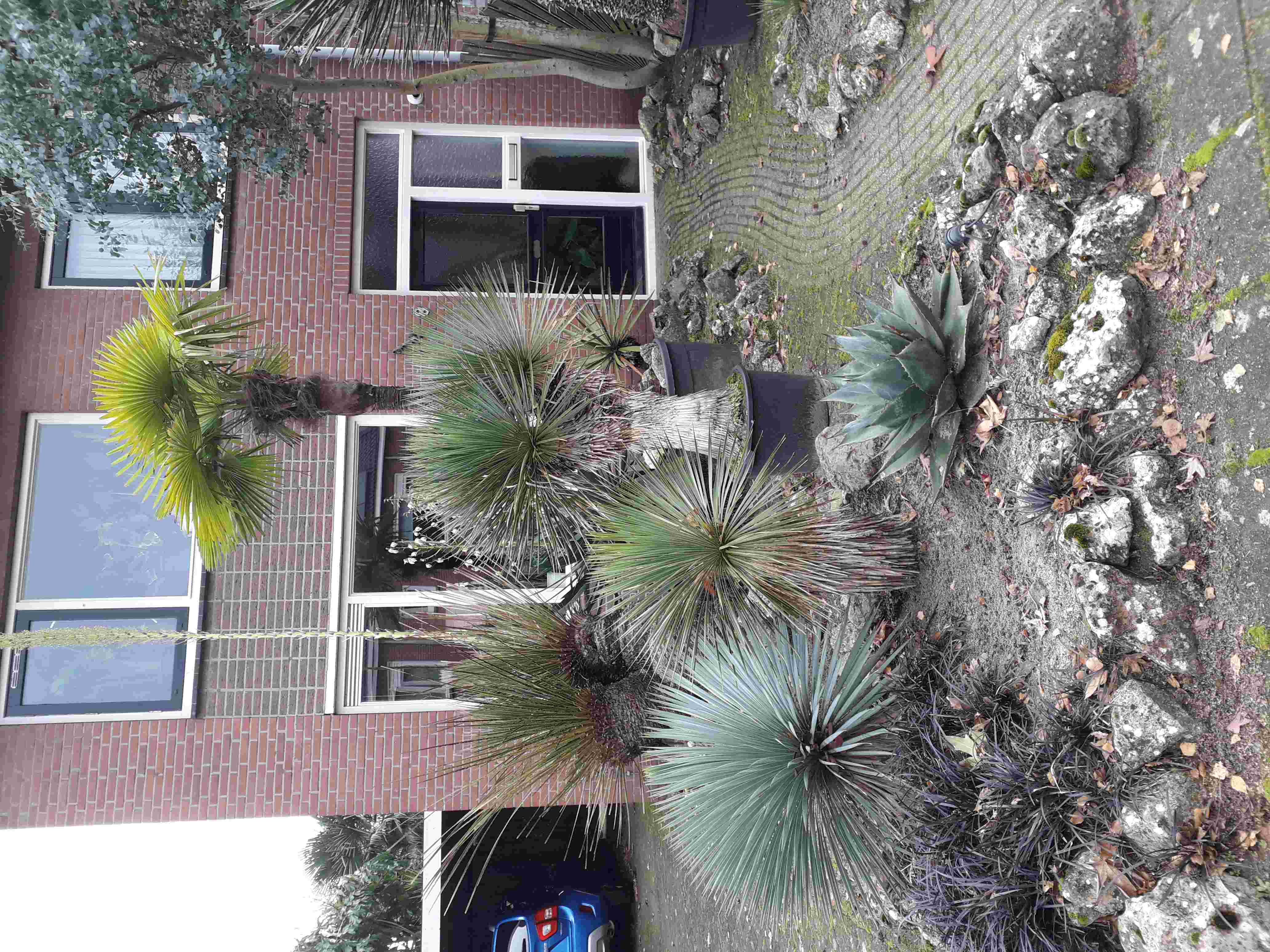 Evident dat het Hollandse klimaat voor deze deze soort niet optimaal is Rob gezien dit twijfelgeval. Ik heb Bismarckia jarenlang in de serre gehad. Die had een goed ontwikkelde kroon met een blad of 7 à 8. Wel werden de bladstelen wat langer wat waarschijnlijk kwam doordat het licht van boven viel. Ik heb helaas geen foto meer. Naderhand heb ik 't nog een paar keer geprobeerd met 's zomers buiten maar dat werd geen succes. Tegenwoordig sleep ik de tropische palmen in de zomer niet meer naar buiten (Chrysalidocarpus lutescens, Dypsis leptocheilos en Syagrus weddellianum. Dat bekomt ze prima.