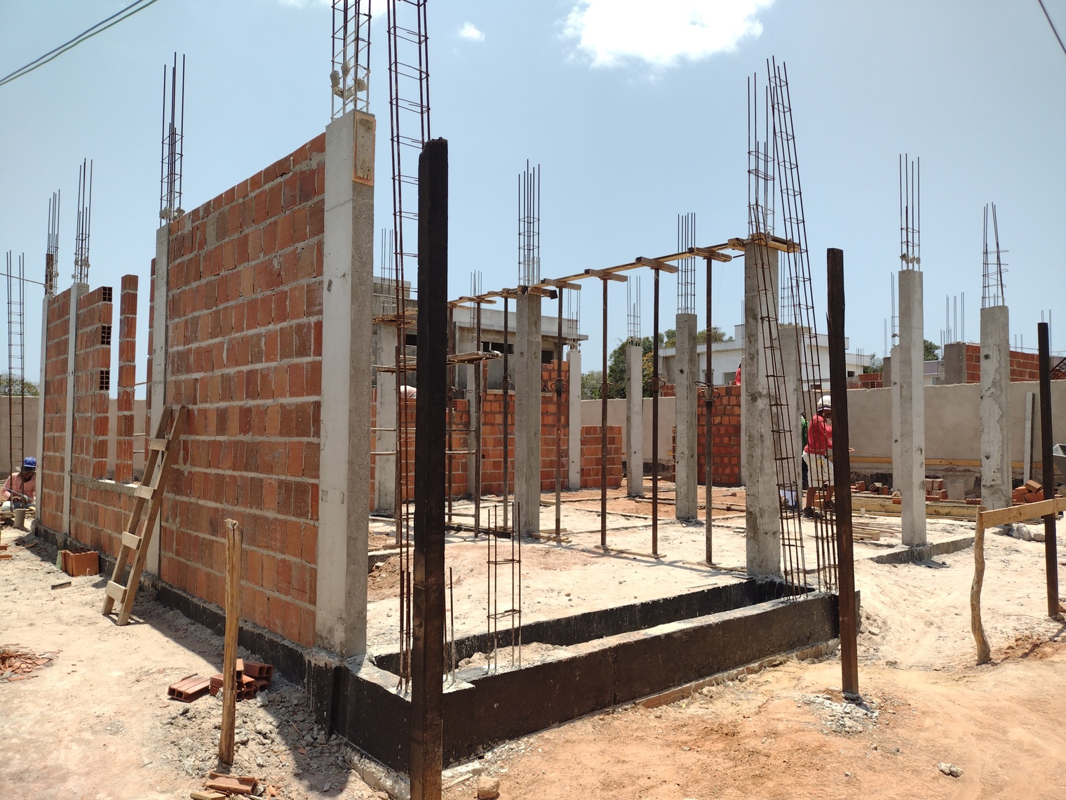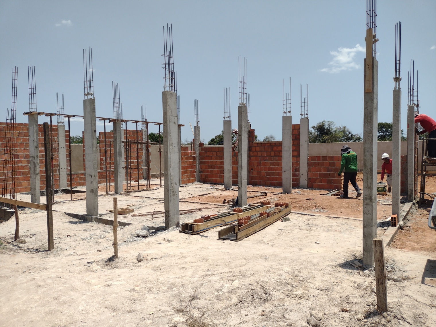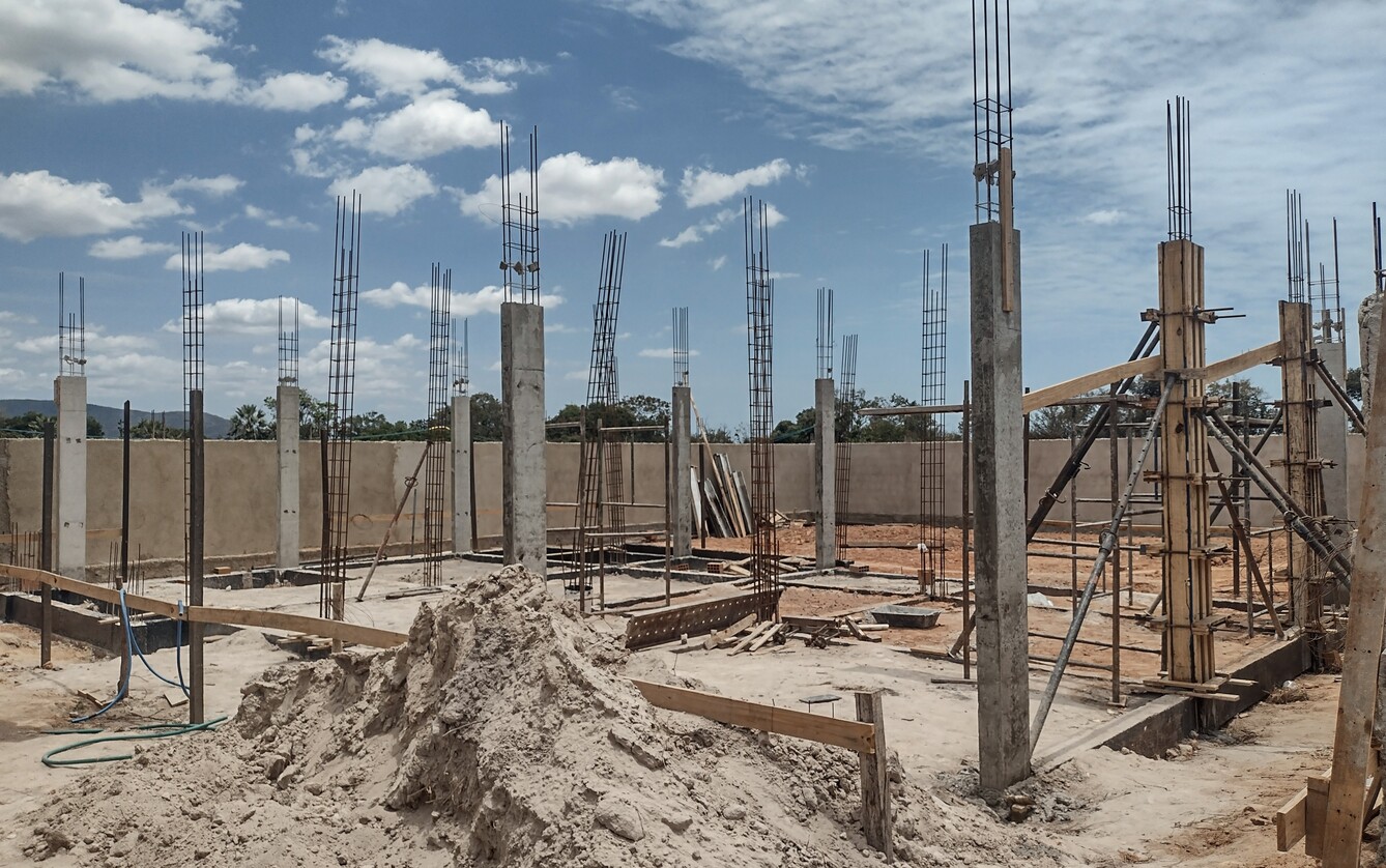 Na een wat vertraagde start mag ik inderdaad zeggen dat het zeker niet tegen valt. Een team gediciplineerde werkers en een strakke planning van de aannemer garanderen de voortgang. Eind december / begin januari klaar is nog steeds realistisch en dat moet ook wel omdat daarna het regenseizoen weer van start gaat. Volgende week worden de vloerdelen voor de tweede verdieping geleverd en kunnen ook daar de kolommen richting het dak en de binnen en buiten muren gebouwd worden.