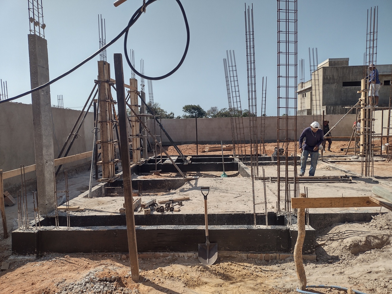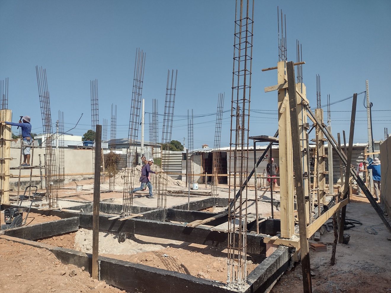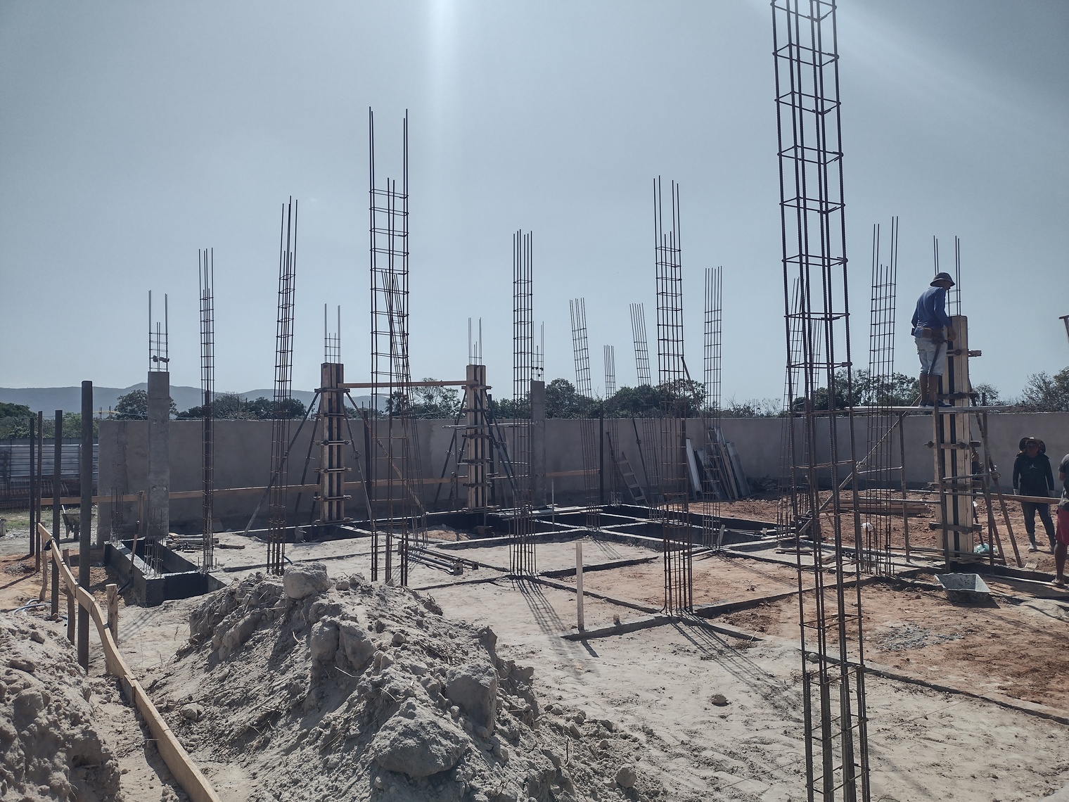Na een wat vertraagde start mag ik inderdaad zeggen dat het zeker niet tegen valt. Een team gediciplineerde werkers en een strakke planning van de aannemer garanderen de voortgang. Eind december / begin januari klaar is nog steeds realistisch en dat moet ook wel omdat daarna het regenseizoen weer van start gaat. Volgende week worden de vloerdelen voor de tweede verdieping geleverd en kunnen ook daar de kolommen richting het dak en de binnen en buiten muren gebouwd worden.