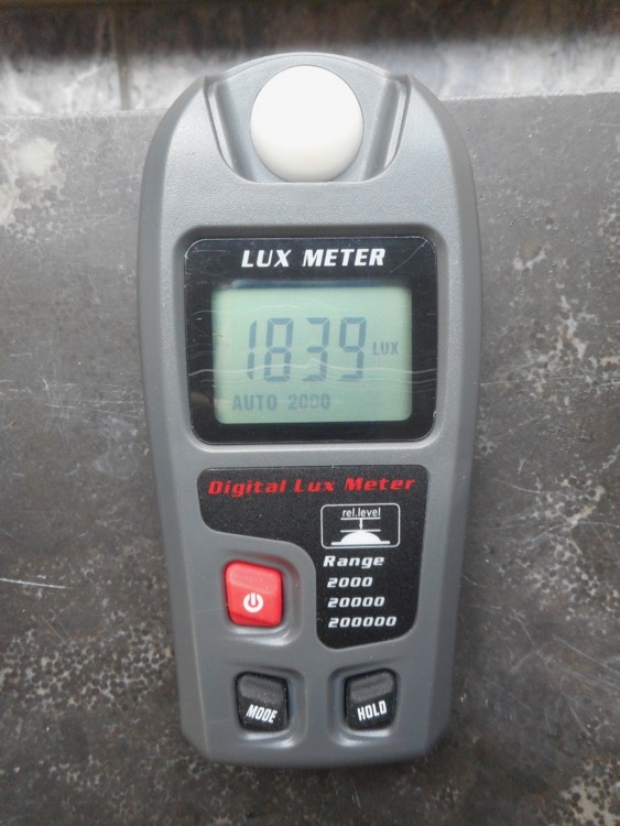 Bij het raam meet ik bijvoorbeeld 2000 lux en op 3 meter afstand is dat nog maar 400 lux. Het is hier nu lichtbewolkt.