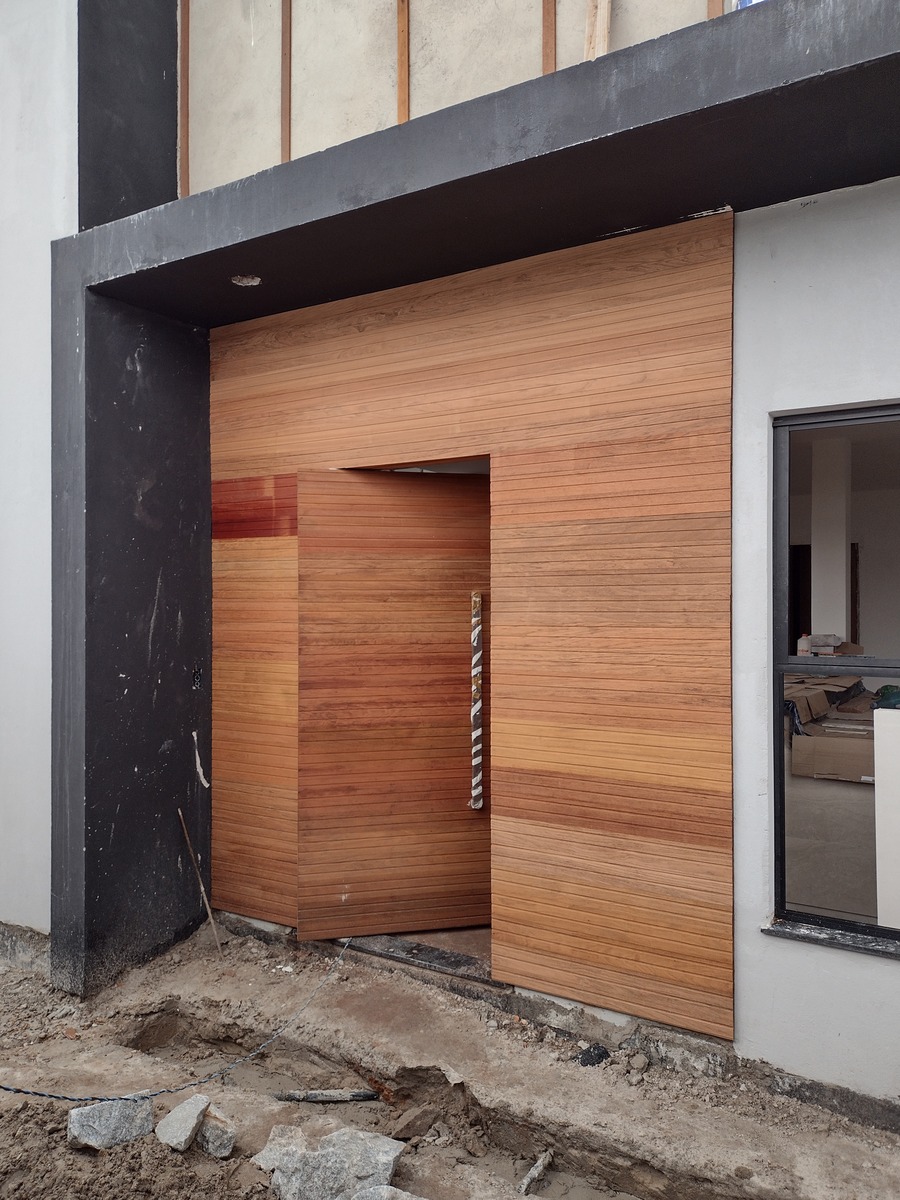 Dat zou inderdaad kunnen, maar dan wordt het met verloop van tijd wat grijzig en dof zoals je dat ook bij teakhouten tuinmeubels ziet die al een aantal jaar buiten staan. In mijn vorige bericht heb ik me vergist, er is slechts een sealer aangebracht, de uiteindelijke vernis laag moet nog komen.