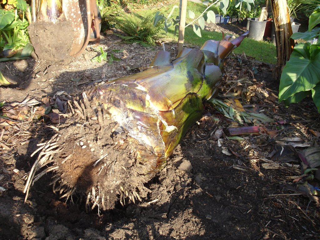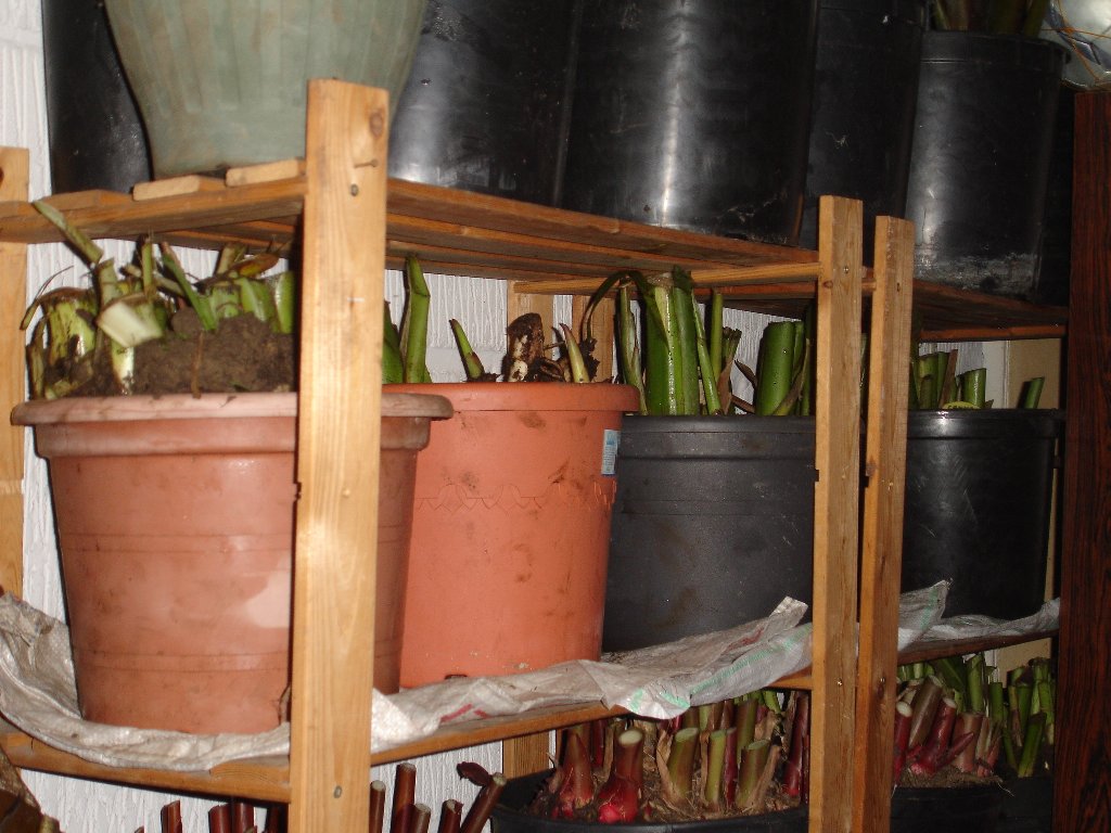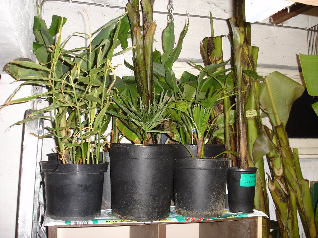 de herfst is ondertussen al een eindje gevorderd en zijn we begonnen om de planten uit te graven voor de overwintering,de planten uitgraven was absoluut geen probleem,ze naar de winterstalling krijgen was een ander paar mouwen.ik moet zeggen dat ten opzichte van vorig jaar mijn krachten heel wat verminderd zijn wat waarschijnlijk gedeeltelijk met mijn ziekte te maken heeft gehad en natuurlijk ook de grotere banananenbomen maar alle lof gaat naar mijn schoonbroer