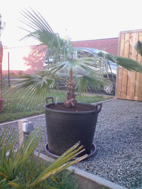 Washingtonia filibusta van 3,5jr, onlangs in deze grotere pot gezet om een groeistimulans te geven.