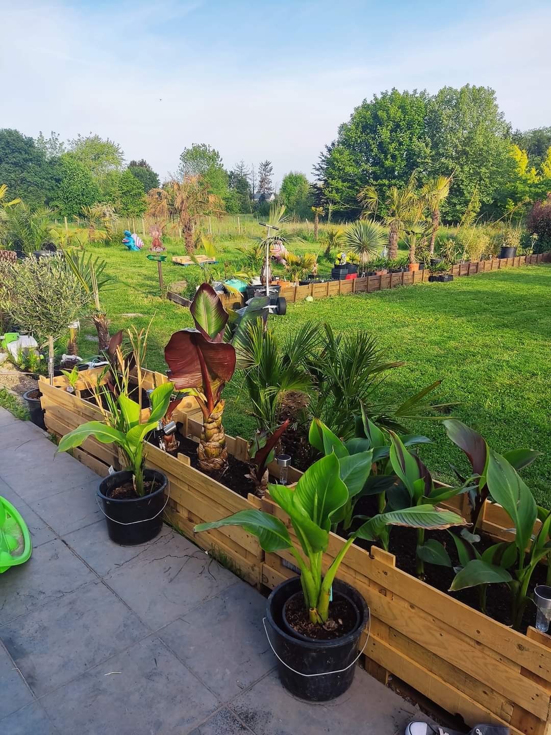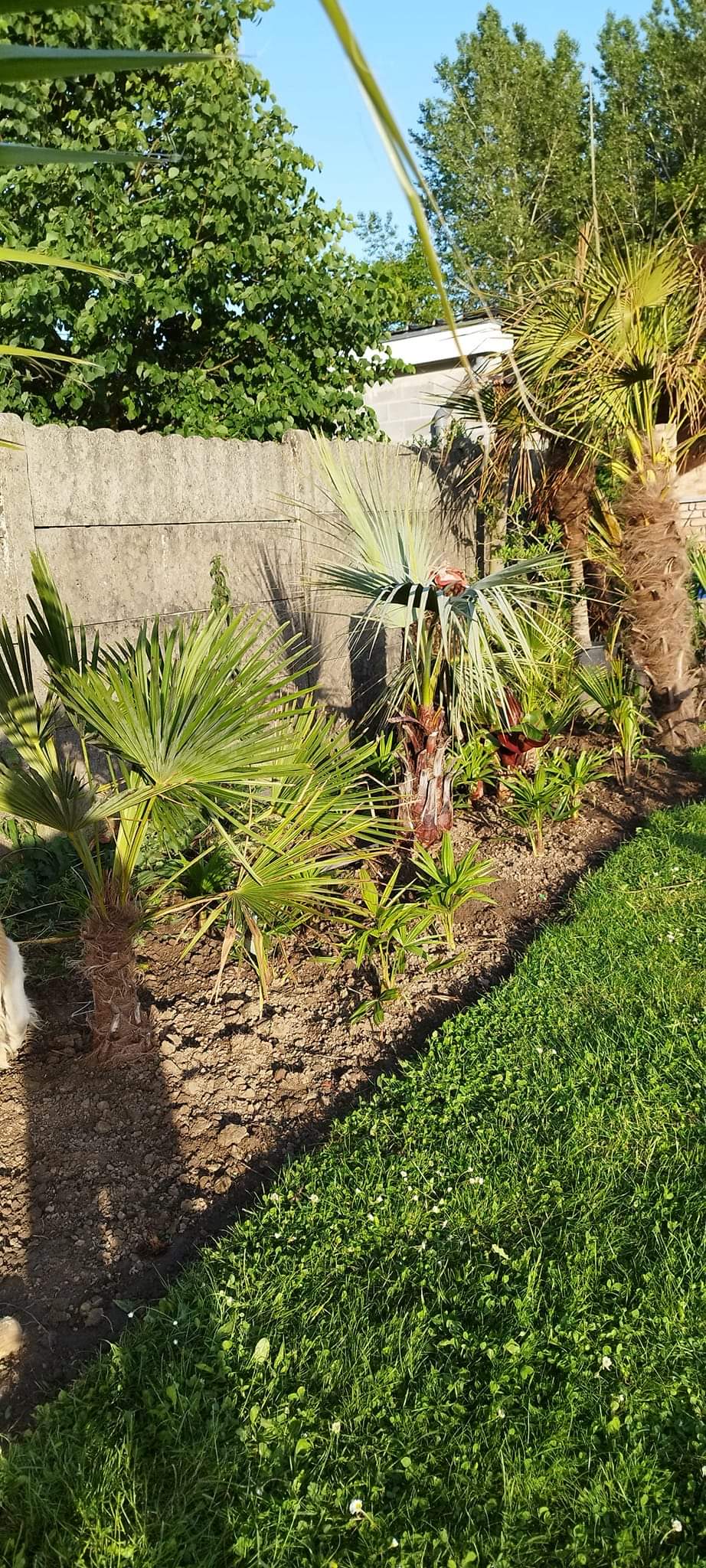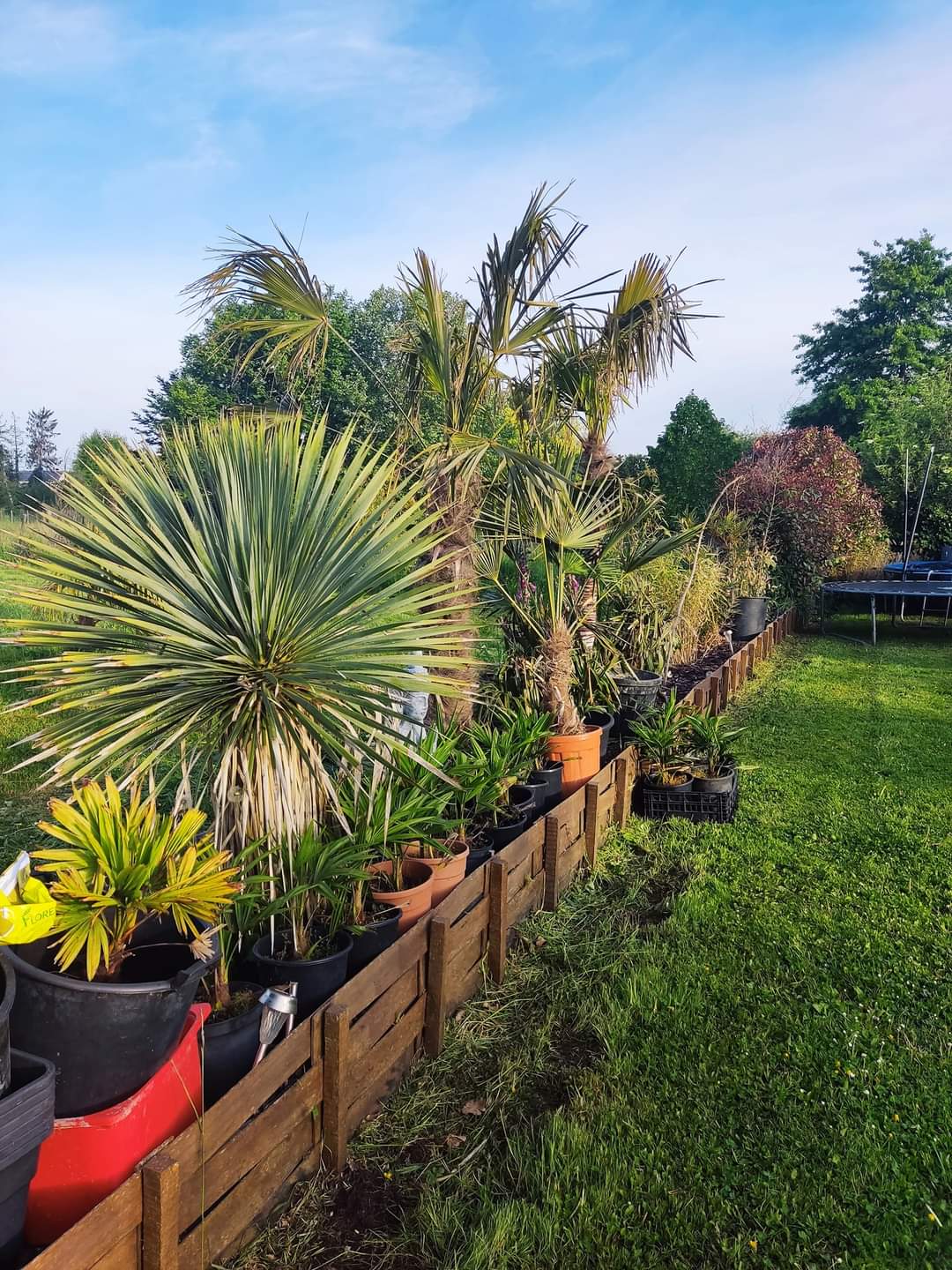 De winter is een ramp geweest , de grote plannen om de weide aan te planten verliep niet zoals verwacht. Deze winter kwam het 10 cm onder water te staan, water die pas weg was einde maart. De palmen werden door storm en het grondwater gewoon platgewalst, dus die heb ik een nieuwe locatie gegeven. Velen zijn dus bruin geworden , maar hier en daar komen de nieuwe speren voorzichtig tevoorschijn.