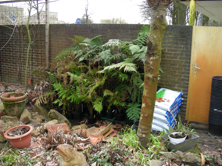 Een groot gedeelte van de boomvarens hebben we buiten gezet, waarbij het me opviel dat vooral de