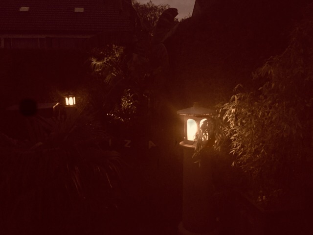 Boeddha hoekje met op de voorgrond Trachycarpus Princeps. Helaas is een canna bij mij in de tuin geen succes i.v.m.veel hongerige slakken.