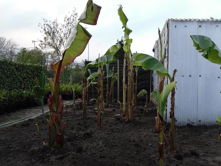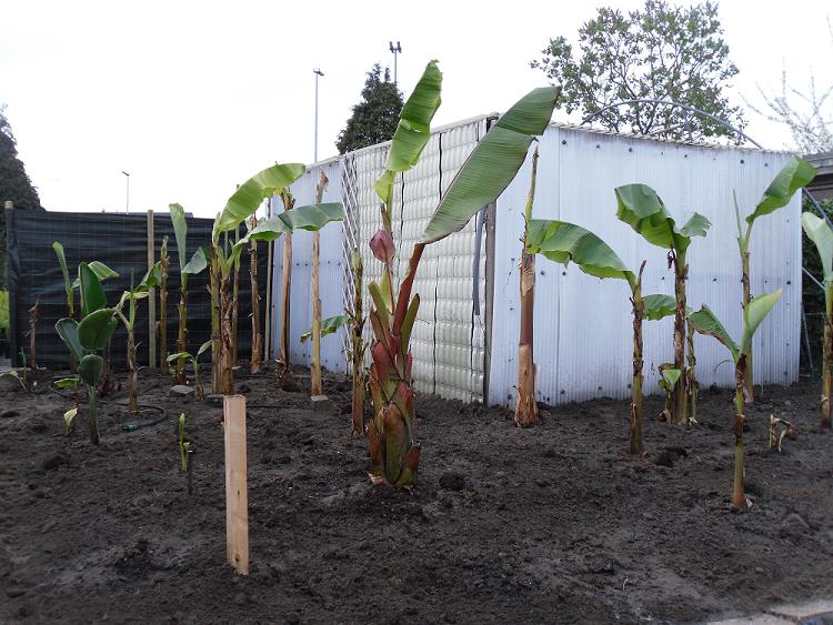 Met de andere soorten ga ik nog even wachten tot de nachttemperaturen boven de 10°C liggen. Tussen de bananen heb ik ook druppelslangen geplaatst. Nu hopen op een warme zomer :)