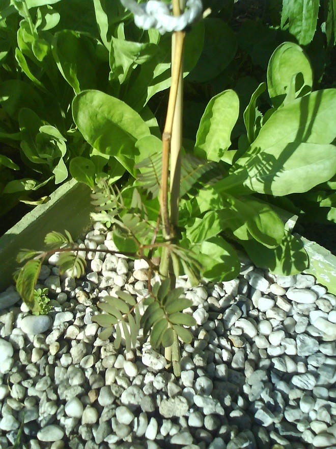 De nog kleine albizia coreana is nu echt uitgelopen met een mooie nieuwe tak. Nu hopen dat hij volgend jaar niet weer half invriest.