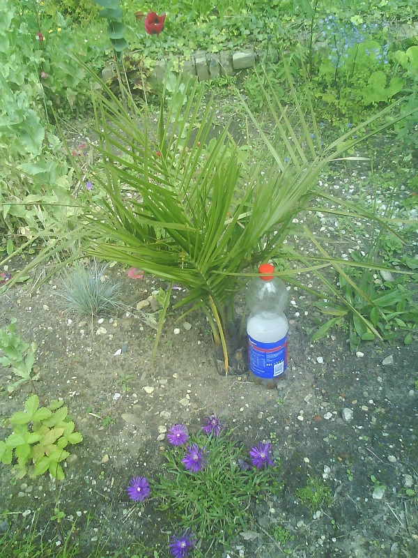 Ik heb een bladstengel van mijn Jubaea gemarkeerd en in de warmste week groeide dat blad anderhalve centimeter. Hij heeft het naar zijn zin.