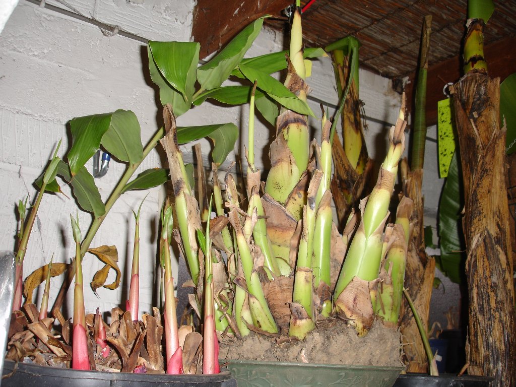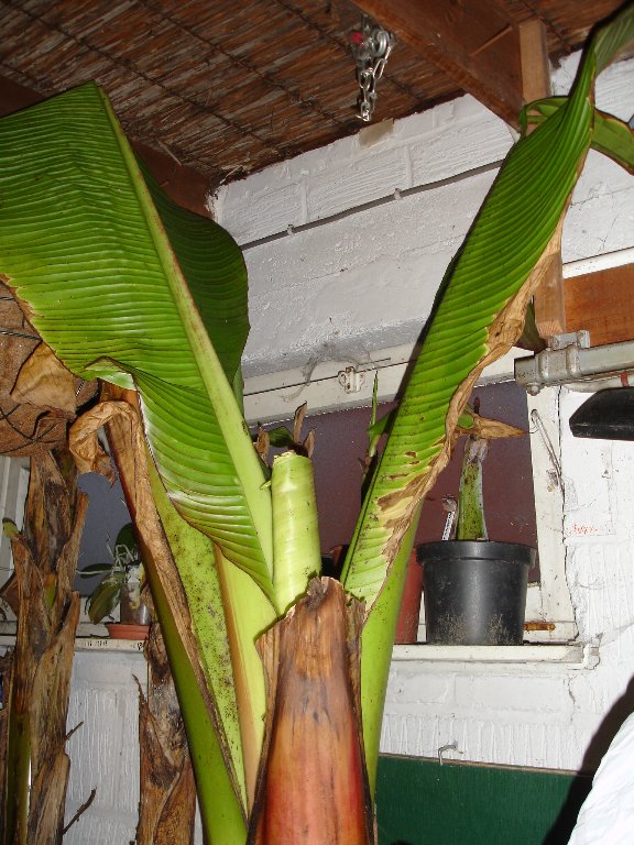 ondertussen is het in de winterstalling gemiddeld 17 graden en groeien de bananen en andere planten dat het een lieve lust is,de grote exemplaren moet ik om de drie dagen een stuk afknippen want ze zitten tot tegen het plafond,volgen er enkele foto's.